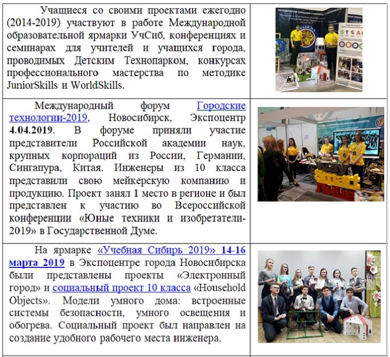 Результатами работы кружка можно считать победы на различных конкурсах и чемпионатах по инженерным компетенциям по методике JuniorSkills, WorldSkills. Ежегодное участие в международной образовательной выставке Учебная Сибирь со своими проектами уже стало традиционным. В работе выставки принимают участие не только старшеклассники, но и ученики 3-4 классов, представляя свои проекты.