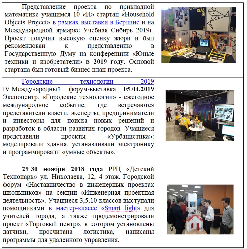 В таблице представлена информация об участии в мероприятиях различного уровня обучающихся с проектами