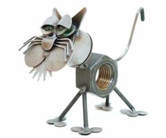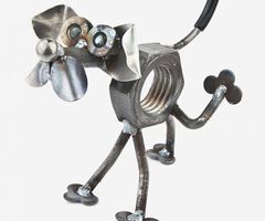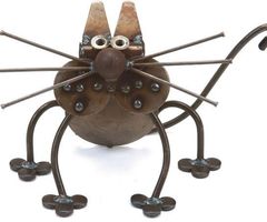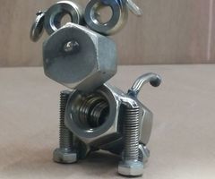 Интересная идея- мастерить интересные поделки своими руками из болтов, шурупов и гаек. Немного фантазии и эти материалы складываются незатейливо в самые разные причудливые формы и образы, принимая облик животных, различных предметов. Можно смастерить кота или машину, цветы или трактор, главное представить себе то, что хочется смастерить. Болтов или гаек уходит разное количество. Скрепить их можно по-разному, а надежнее всего приварить, составив композицию.