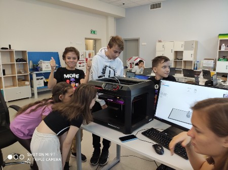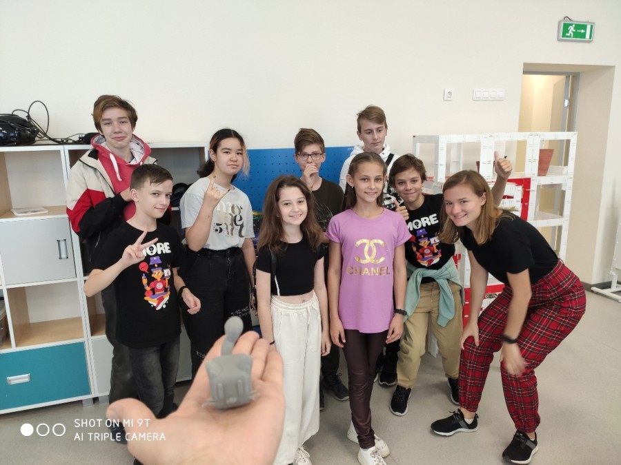 Разобрали принцип работы 3D принтера, попробовали свои силы в создании 3D моделей. Консультантом по 3D моделированию стала Евсеева Анастасия – победитель соревнований по прототипированию и ученица Татьяны Петровны.
