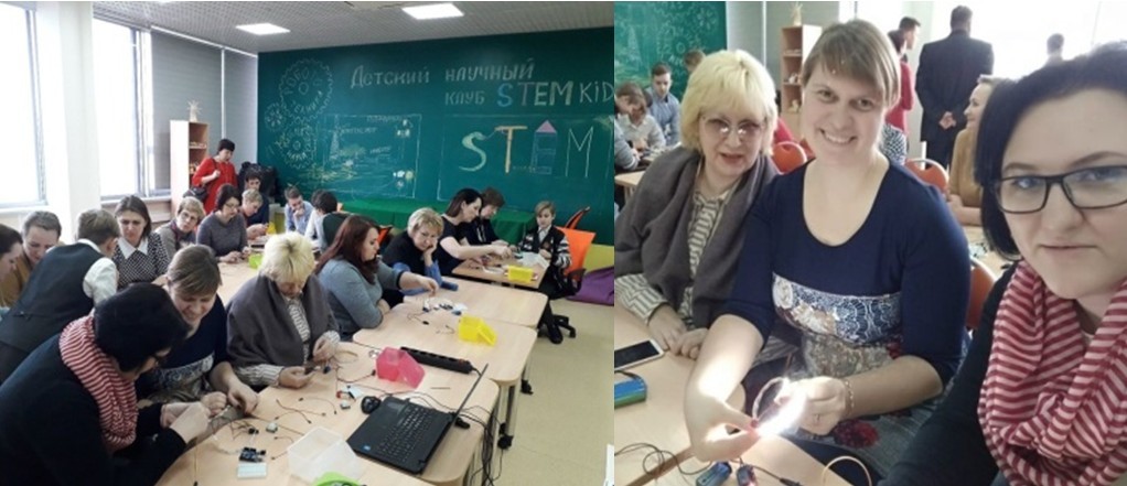 На мастер-классе для учителей города представила на практике методику работы с детьми «Как объяснить ребенку «непонятное» понятным языком». На занятии собрались учителя, которые не занимаются программированием, электроникой, схемотехникой. Задачей было за 40 минут собрать с группой учителей (20 человек) «Умную лампу», в которой установлен датчик движения. По показаниям датчика подавался сигнал на управляемое реле, загоралась светодиодная лента. Коллеги дали высокую оценку моей методике работы с детьми, и отметили у всех позитивный настрой «Всё заработало!»