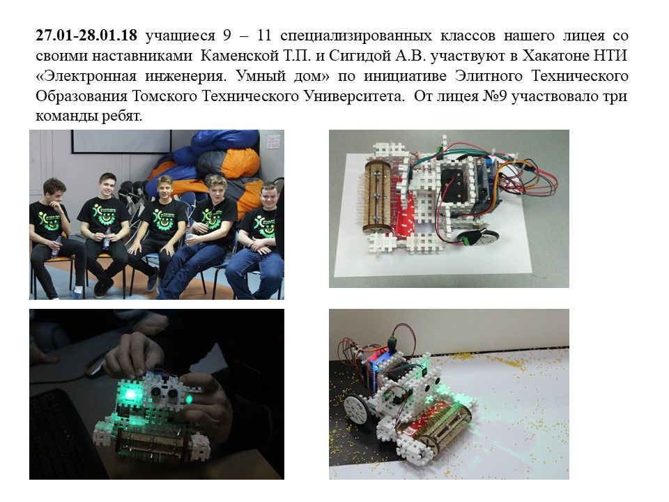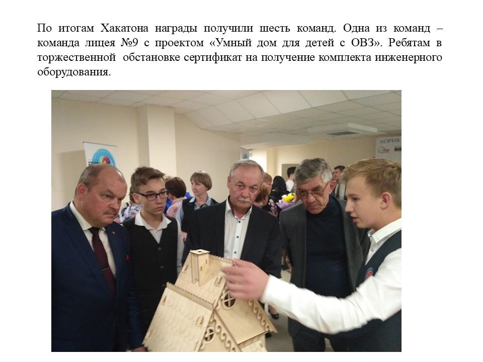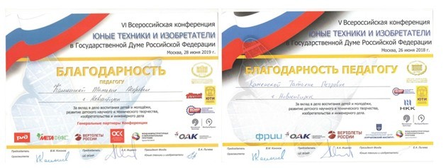 Выход на Региональный и Всероссийский уровень с проектами школьников: в 2018 году инженерный проект учащихся Стародубцева В. и Жукова А. «Умный дом» в номинации «Социальные инновации» стал победителем регионального конкурса проектов и был рекомендован к представлению в Государственной Думе на Всероссийской конференции «Юные техники и изобретатели», где занял 1 место.